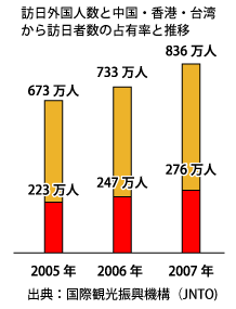 中国・香港・台湾からの訪日者数の増加